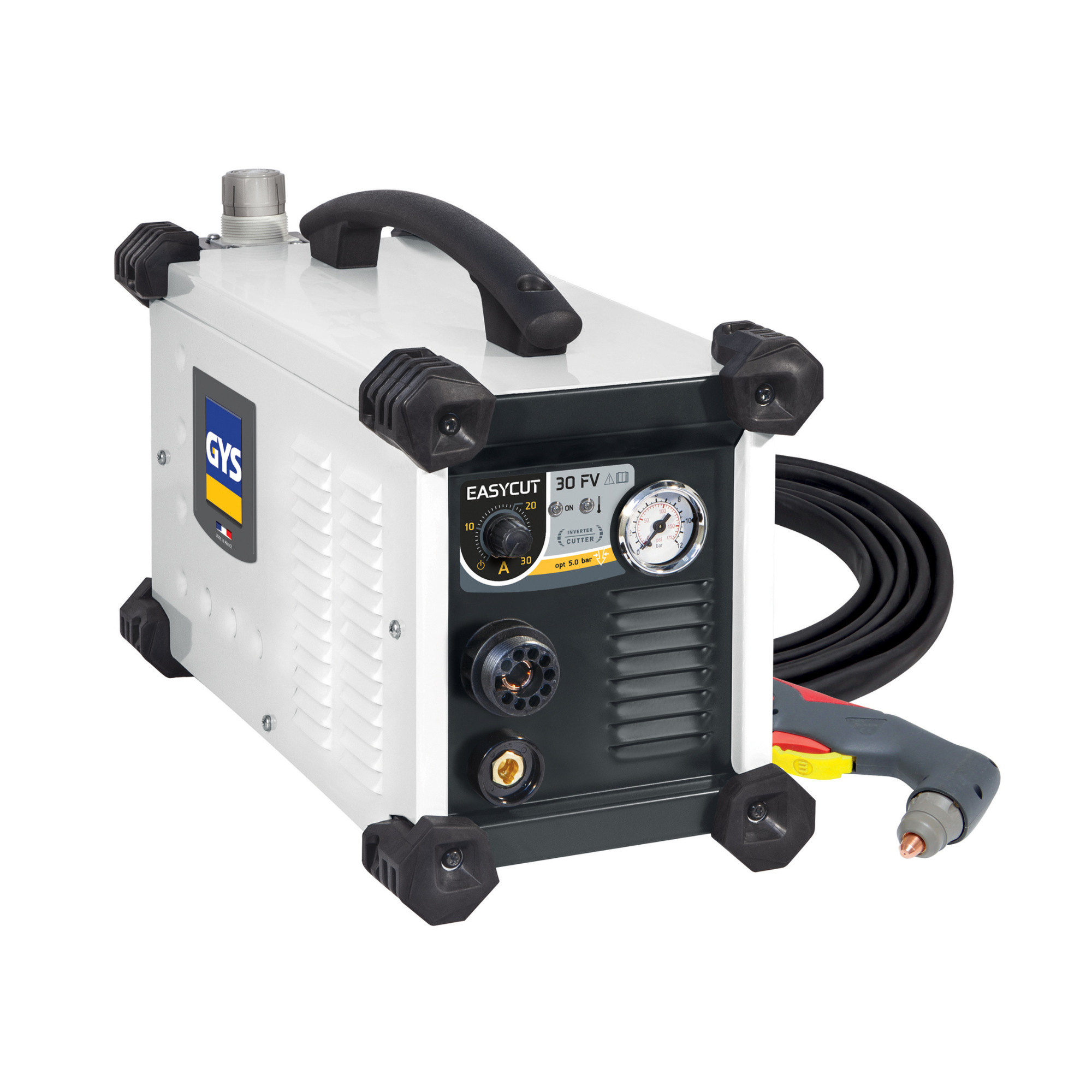 EASYCUT 30 FV is a 30 A plasma cutter with a cutting capacity of 10 mm in steel (and 15 mm in separation). Its HF-free ignition system extends the life of consumables. Designed for maintenance work, such as car bodywork, it features very robust mechanics and a simple interface with flowmeter.